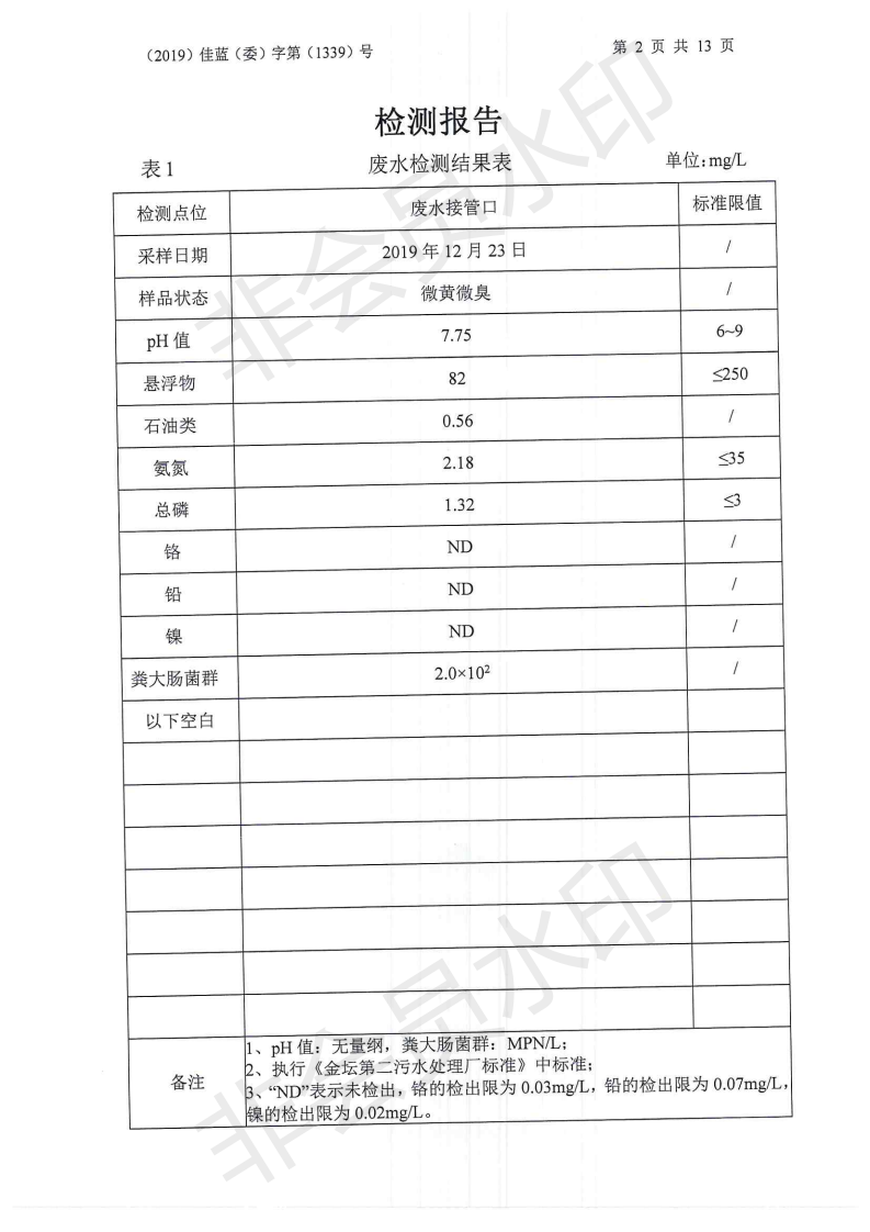 2019年12月我司委托常州佳藍(lán)環(huán)境檢測(cè)有限公司對(duì)本司廠區(qū)范圍內(nèi)的廢水、有組織廢氣、無組廢氣、噪聲等進(jìn)行檢測(cè)并提供檢測(cè)數(shù)據(jù),檢測(cè)時(shí),本司正常生產(chǎn)運(yùn)行。以下為常州佳藍(lán)環(huán)境檢測(cè)有限公司提供檢測(cè)報(bào)告。